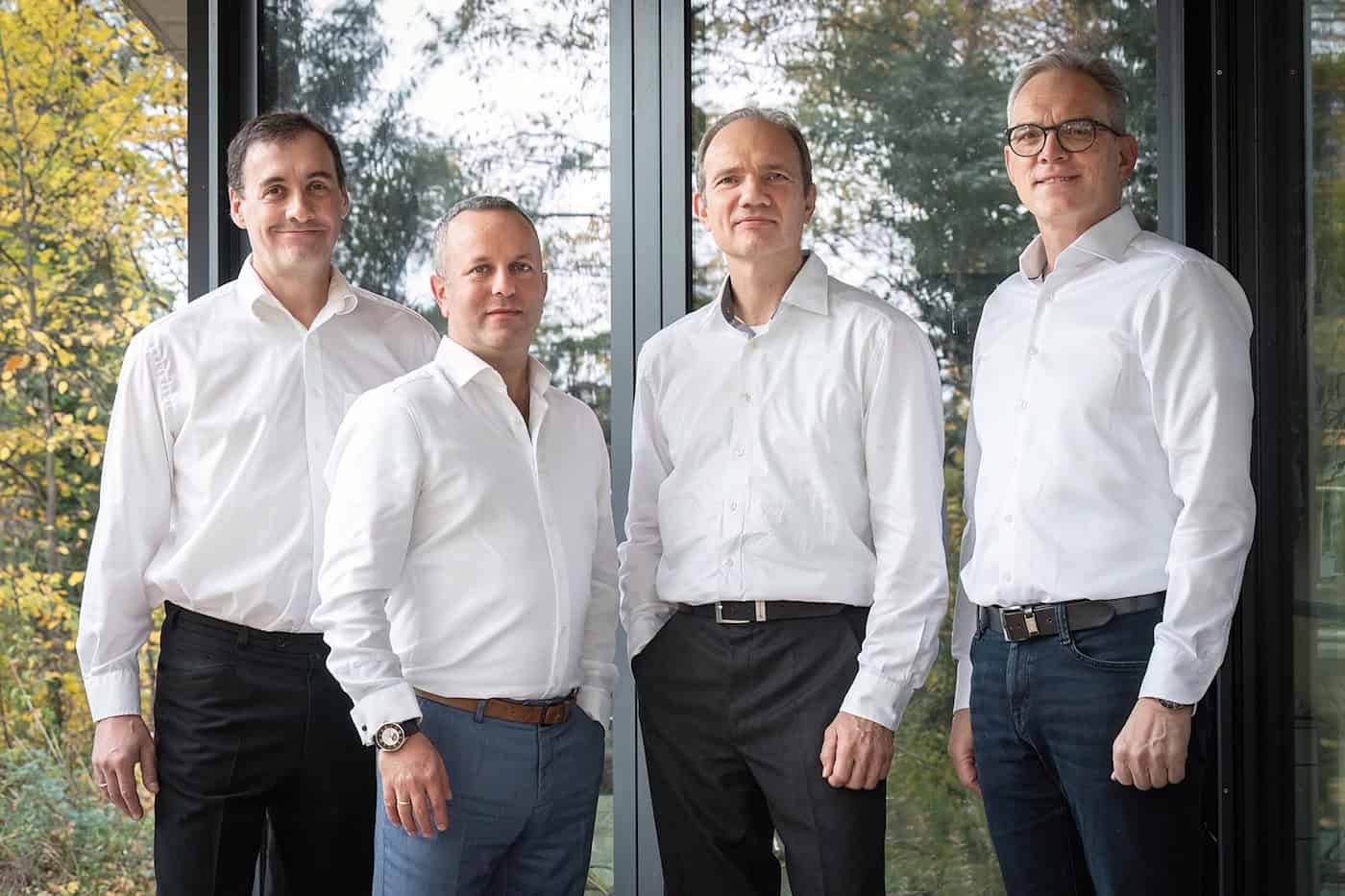 Das Management-Team der Connected Worker Intelligence GmbH: Robert Büchner (CEO), Eduard Daoud (CRO), Dirk Engwicht (CTO) und Swen Hallasch (CEO) (v.l.n.r.)