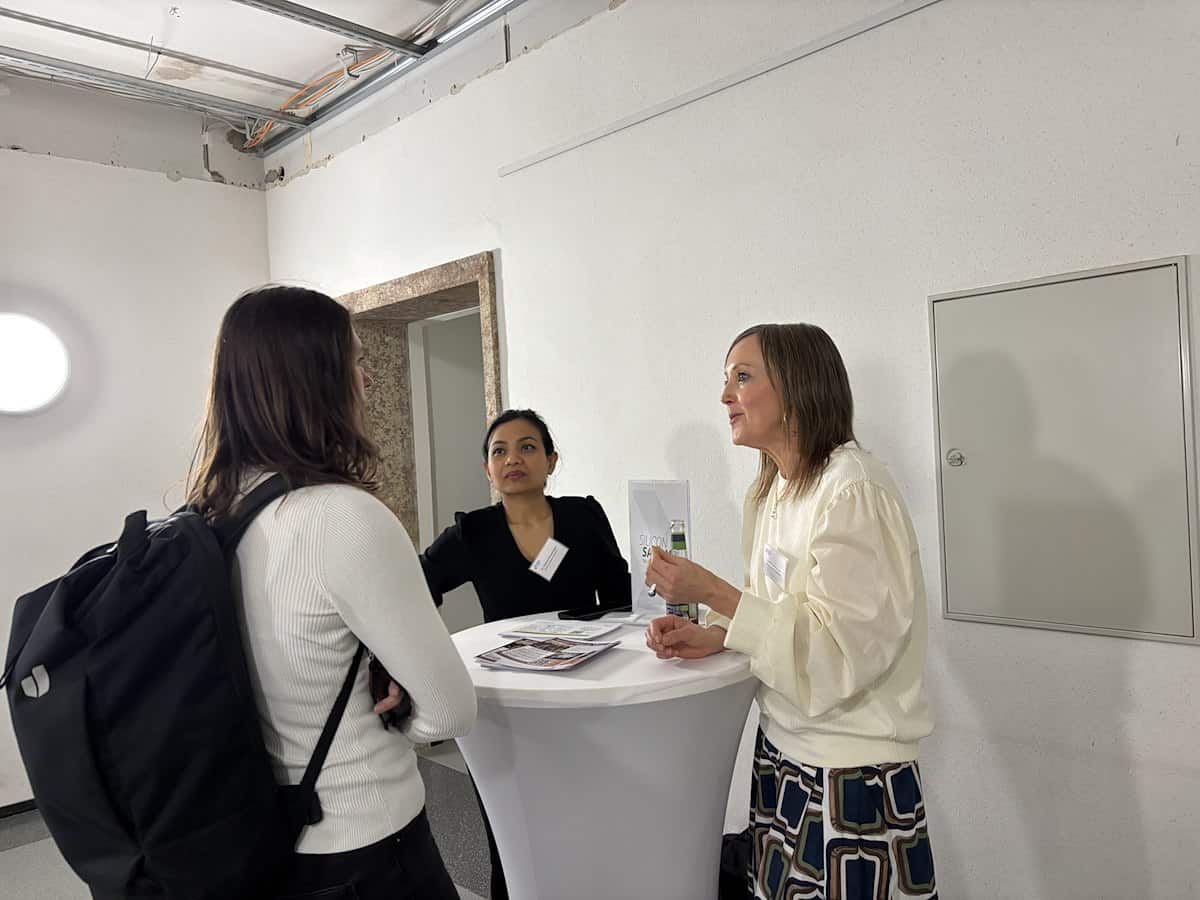 Linda and Daniela from SWE in conversation with a female student. Photo: Silicon Saxony