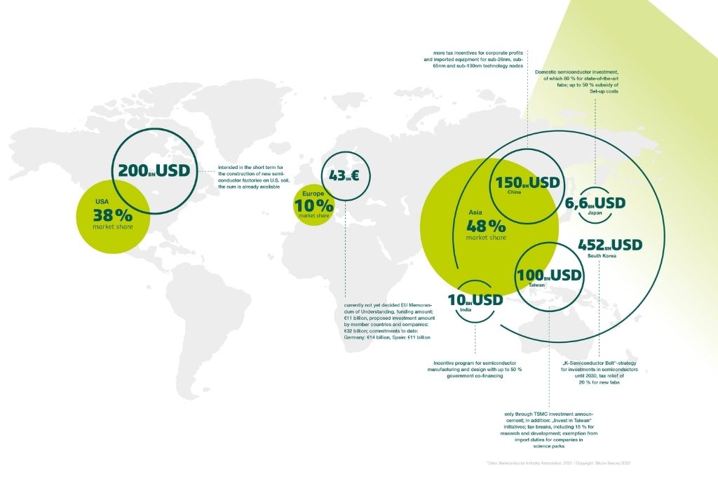 Global comparison of market shares and investment volumes in microelectronics
