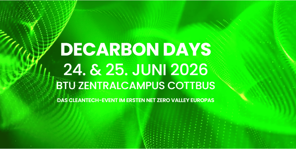 KonferenzDECARBON DAYSDigitalisierung24.06.2026 09:0025.06.2026 17:00BTU Cottbus-SenftenbergPlatz der Deutschen Einheit 1 03046 Cottbus