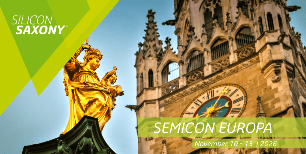 MessenSEMICON EUROPA 2026Automatisierung | Digitalisierung | Diversity | Elektronik | Förderung | Forschung & Entwicklung | Funk & Datenübertragung | Halbleiter | Internationalisierung | IT | Künstliche Intelligenz (KI) | Maschinen- & Anlagenbau | Mobilität | Nachhaltigkeit | Nanoelektronik | Ökologie & Energiewende | Packaging | Produktion | Reinraum | Robotik | Sensorik | Silicon Saxony | Softwareentwicklung10.11.2026 10:0013.11.2026 16:00MünchenMessegelände 81823 München