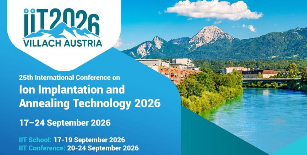 Konferenz25th International Conference on Ion Implantation and Annealing Technology (IIT)Elektronik | Halbleiter | Nanoelektronik | Prozesstechnologien | Reinraum | Technologische Souveränität20.09.2026 00:0024.09.2026 00:00Congress-Center VillachEuropapl. 1 9500 Villach, Österreich