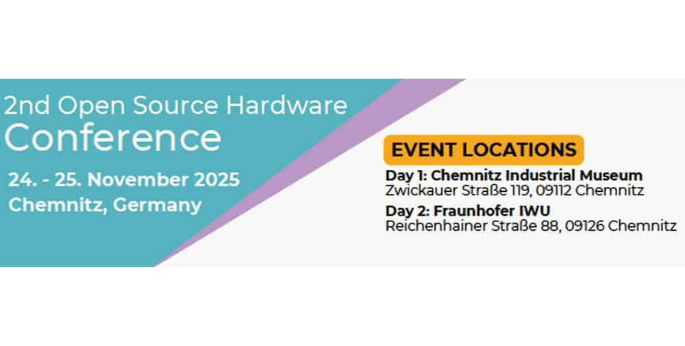 KonferenzOpen Source Hardware Konferenz 2025Elektronik | Halbleiter | Technologische Souveränität24.11.2025 09:0025.11.2025 14:30Industriemuseum Chemnitz und Fraunhofer IWUZwickauer Str. 119 und Reichenhainer Str. 88 09112 Chemnitz