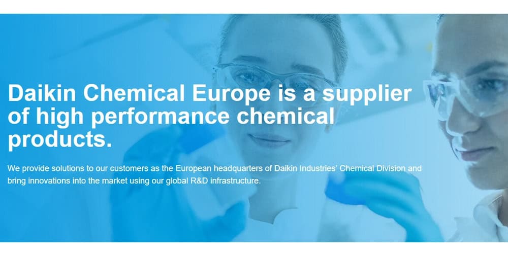 Die Daikin Chemical Europe GmbH ist eine hundertprozentige Tochtergesellschaft der globalen Daikin Industries Ltd. Gruppe, dem führenden Anbieter von Wärmepumpen- und Klimaanlagen sowie Luftfiltersystemen und einem der weltweit führenden Hersteller von fluorchemischen Produkten. Daikin Industries wurde 1924 in Osaka, Japan, gegründet. Der globale Konzern beschäftigt weltweit über 96.000 Mitarbeiter und ist der weltweit einzige Hersteller, der Heizungs-, Lüftungs-, Klima- und Kälteanlagen sowie Kältemittel selbst entwickelt und herstellt.