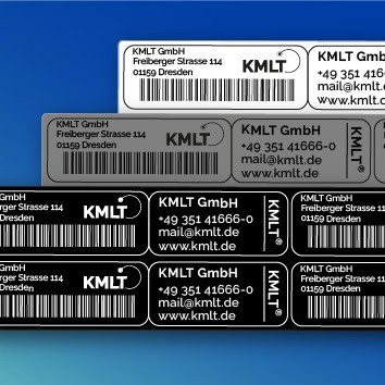 Laserbeschriftete Etiketten von KMLT®. Das sind Premiumprodukte für nahezu alle Bereiche der Wirtschaft: Typenschilder, Warnschilder, Schilder mit Barcode, DMC oder QR-Code, Hinweisschilder, Prüfplaketten, sogenannte dokumentenechte Siegel oder Plomben… in beliebiger Form und Größe.
