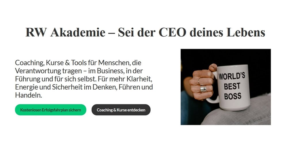Die RW Akademie steht für echtes Wachstum. Wir begleiten Menschen, die Verantwortung tragen, und helfen ihnen, mit Energie, Klarheit und Sicherheit zu führen.