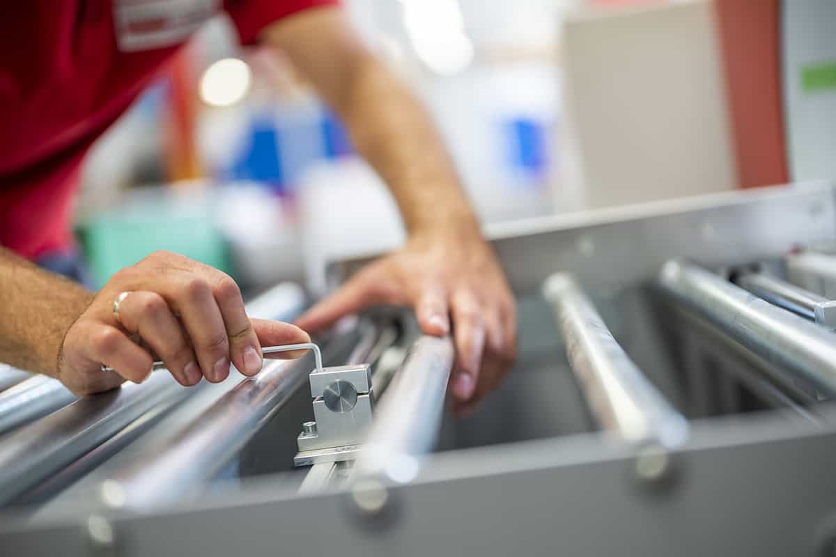 Abbildung 1: Ein Mitarbeiter der romwell GmbH & Co. KG bei der Montage an einer Twistpac-Verpackungsmaschine