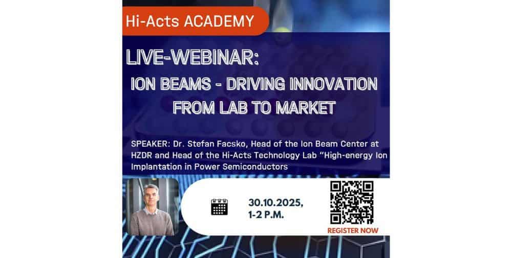 Join our upcoming Hi-Acts Academy Webinar to discover how modern ion beam techniques are applied in both research and industrial production — and how your organization can benefit from them.