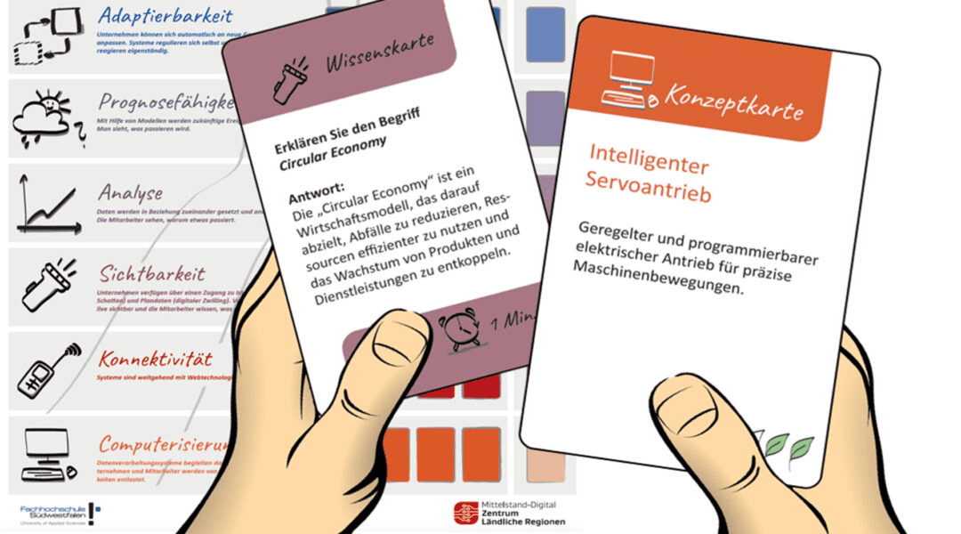 Der Workshop bietet einen niedrigschwelligen Einstieg in zentrale Zukunftsthemen für kleine und mittlere Unternehmen: Kreislaufwirtschaft, Industrie 4.0 und nachhaltige Geschäftsmodelle. Sie nehmen konkrete Impulse und Denkansätze mit, die sich auf Ihr eigenes Unternehmen übertragen lassen.