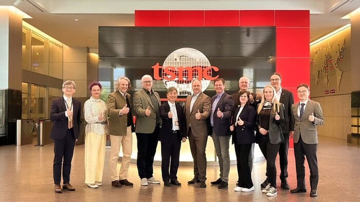 Mit der Konzernspitze des weltweit führenden Auftragsfertiger für Mikroelektronik TSMC, der aktuell in Dresden für zehn Milliarden Euro eine Chipfabrik aufbaut, tauschte sich die Delegation über den planmäßig verlaufenden Projektfortschritt aus. Außerdem erhielt die Gruppe vertiefte Einblicke in die Nachhaltigkeitsstrategie von TSMC. Im Fokus steht der schonende Umgang mit der Ressource Wasser und die Abwasserbehandlung in der Chipproduktion.